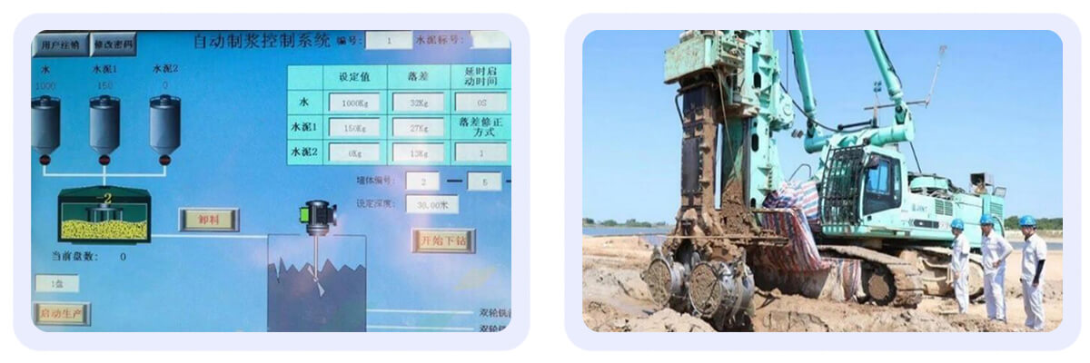 引入圖像識別、移動端APP等技術,實現(xiàn)雙輪銑施工參數(shù)的數(shù)字化精細監(jiān)測。同時,采用大量先進的自動化硬件設備,實現(xiàn)雙輪銑制漿、注漿系統(tǒng)自動化操控,將制漿、注漿系統(tǒng)與雙輪銑鉆進機械設備形成聯(lián)動,減少人力節(jié)約成本,降低水泥用量,提高防滲墻質量。