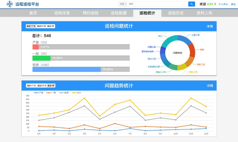 巡檢數(shù)據(jù):巡檢任務(wù)的統(tǒng)計、巡檢問題的統(tǒng)計、問題趨勢的統(tǒng)計。